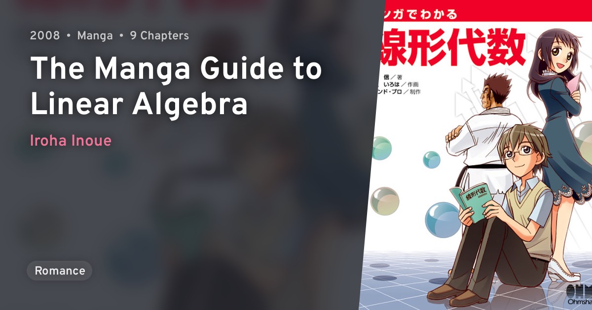 The manga guide to linear algebra (マンガでわかる 線形代数) is a manga guide that explains linear algebra. The latest addition to no starch press's bestselling manga guide series, the manga guide to linear algebra, uses japanese comics, clear explanations, and a charming storyline to explain the essentials of linear algebra. The latest in the manga guide series tackles the complicated math of linear algebra.